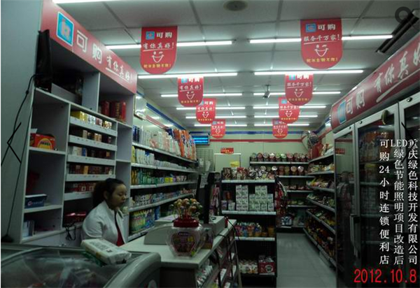 公司在可購(gòu)24小時(shí)連鎖便利店實(shí)施的LED綠色照明節(jié)能改造實(shí)圖