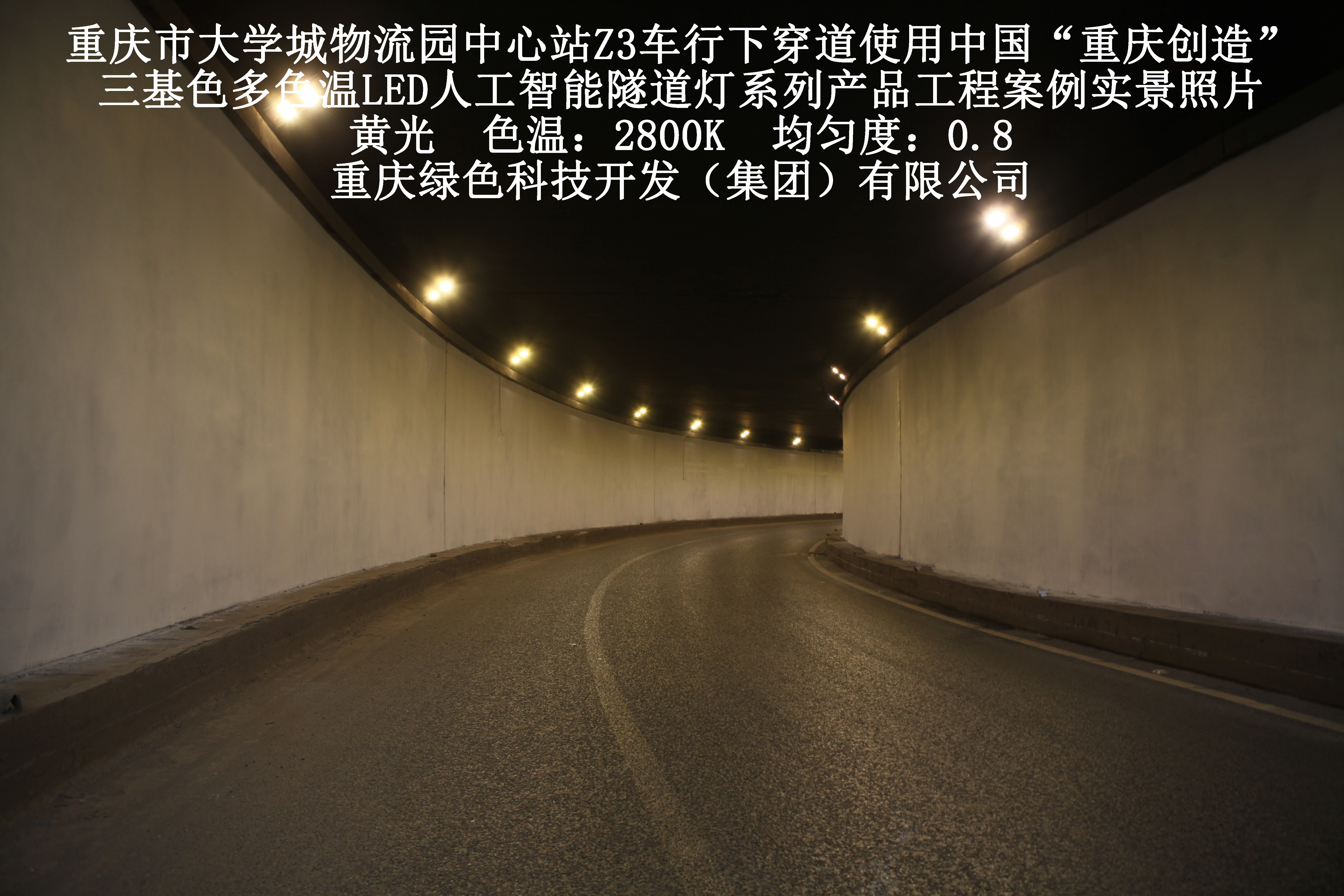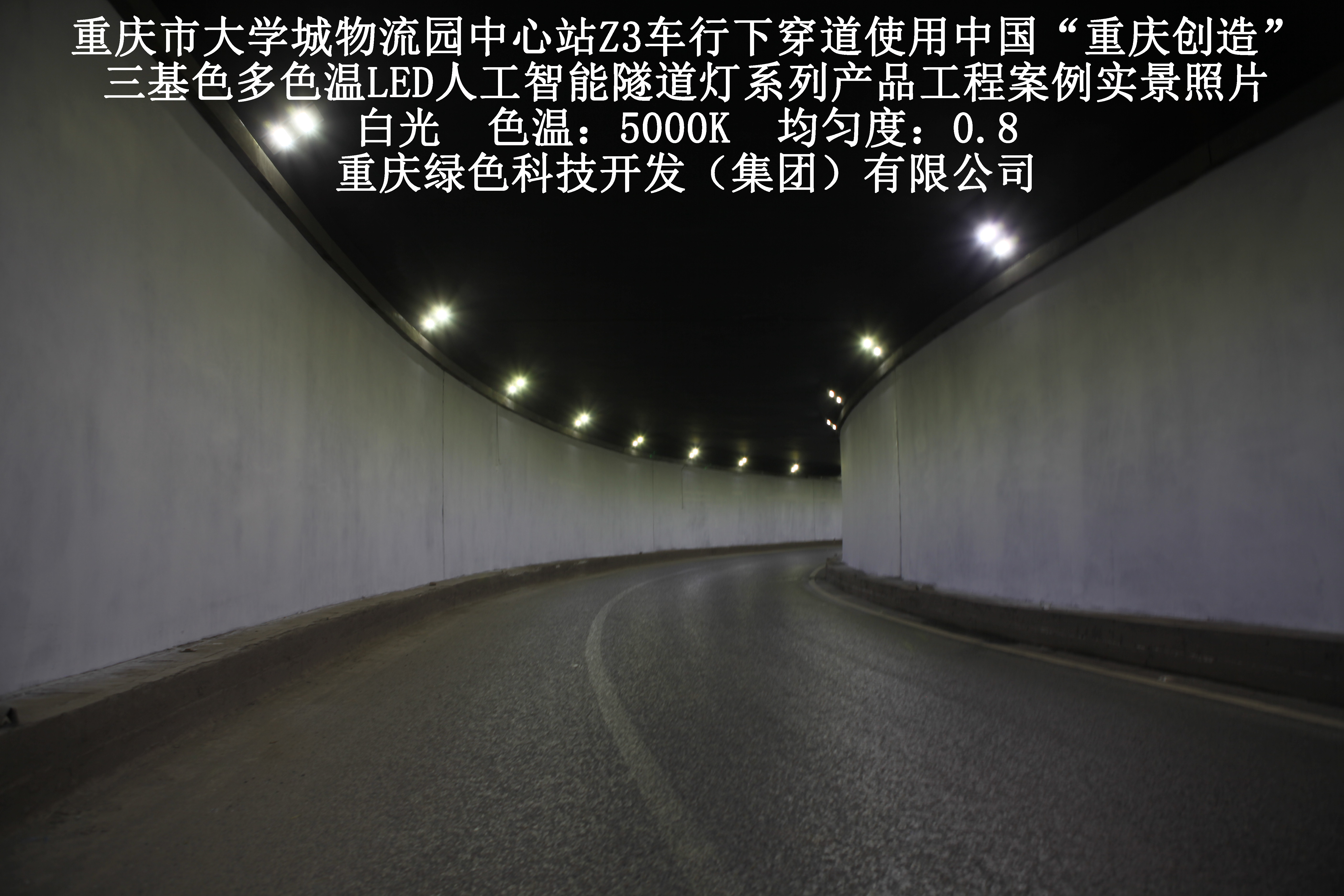 2019年3月,重慶市大學(xué)城物流園中心站Z3車行下穿道使用我司自主研發(fā)制造的,重慶“中國創(chuàng)造”三基色多色溫LED人工智能隧道燈系列產(chǎn)品,實(shí)施了市政設(shè)施品質(zhì)提升工程(工程案例實(shí)景照片附后)。此項(xiàng)目的實(shí)施,極大地提高了隧道內(nèi)照明清晰度、燈光均勻度、舒適度及照明安全性,實(shí)現(xiàn)了隧道照明系統(tǒng)的智能化管理。